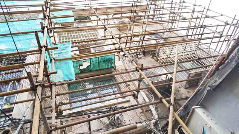 上海延安飯店外墻 常年經(jīng)受自然界凍融循環(huán)的影響,隨著時間的延長。 墻皮脫落, 內(nèi)墻滲水 ,外觀老化陳舊。
